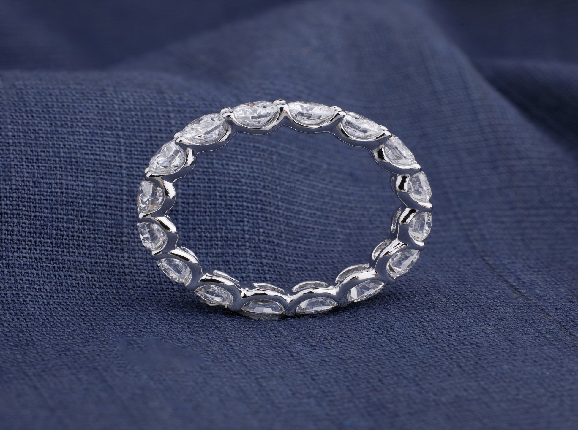 Evoke timeless beauty with the Eclipse Full Eternity Band, where brilliance meets modern ethics. This luxurious piece showcases a continuous circle of meticulously cut lab-grown diamonds — each nestled in a secure half-moon bezel setting for a seamless sparkle from every angle. Crafted in radiant white gold, this ring symbolizes infinite love and enduring elegance.