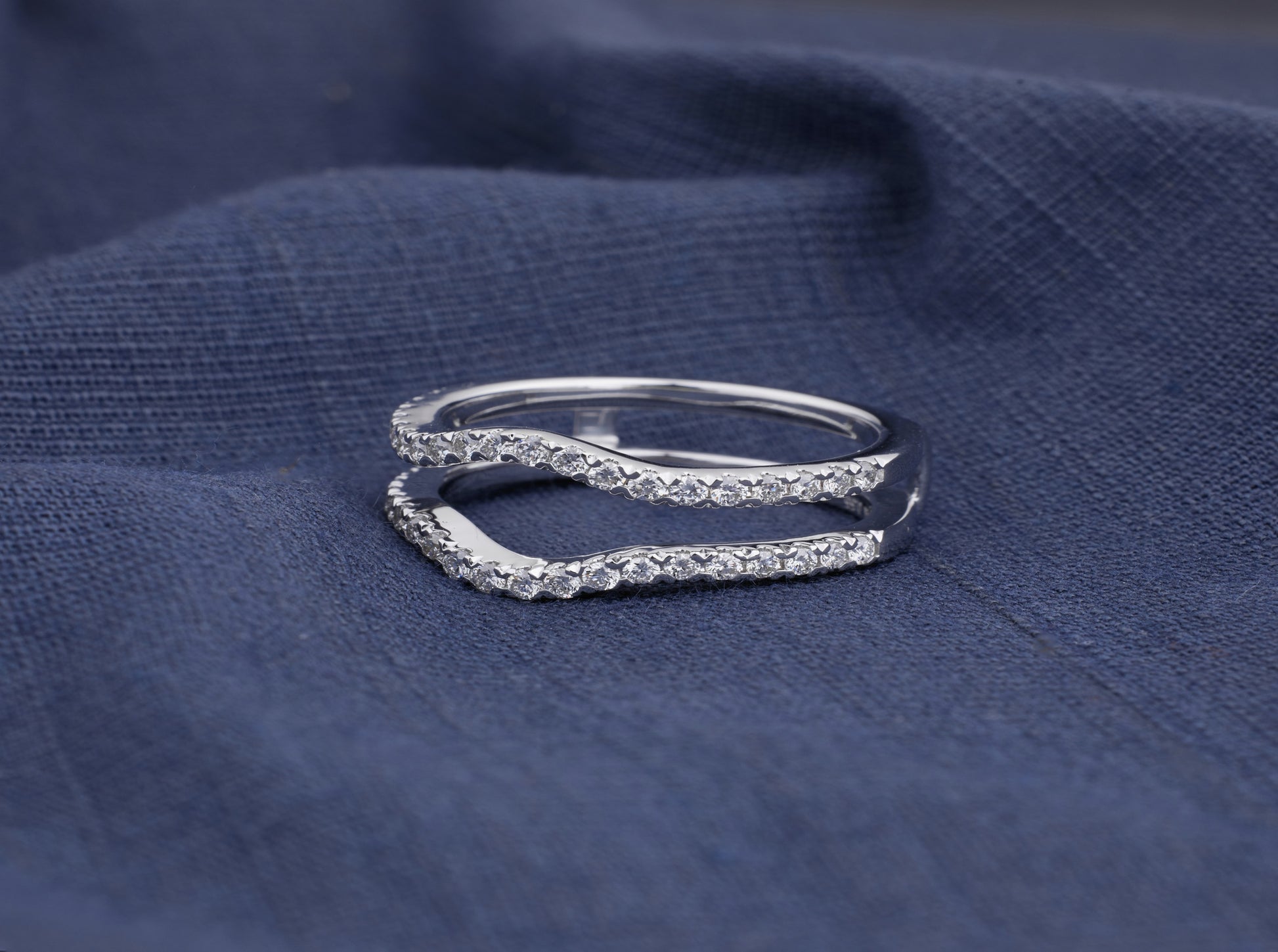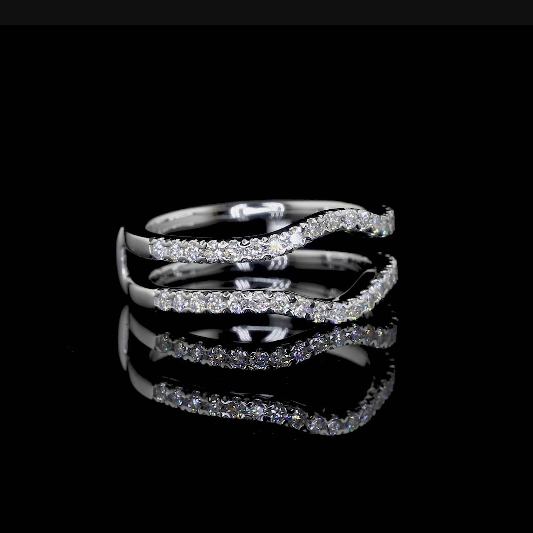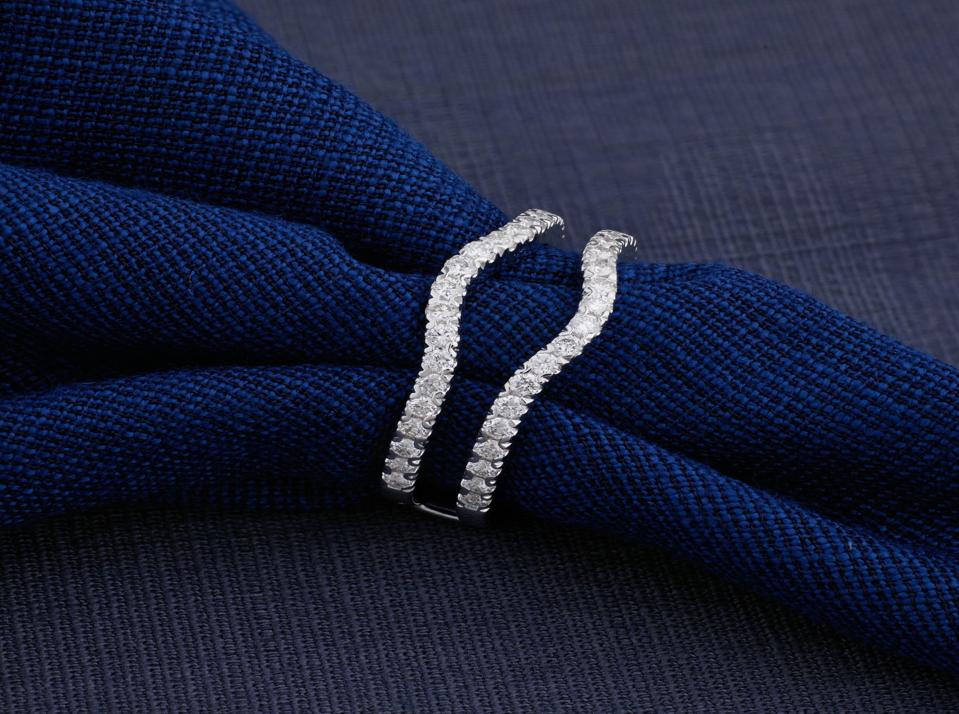 Modern artistry meets timeless elegance in the Serenity Wave Ring. Designed with two gracefully curved bands that mirror the natural rhythm of waves, this ring exudes harmony and movement. Each band is adorned with a stream of sparkling lab-grown diamonds, set in luminous white gold for an effortless glow.