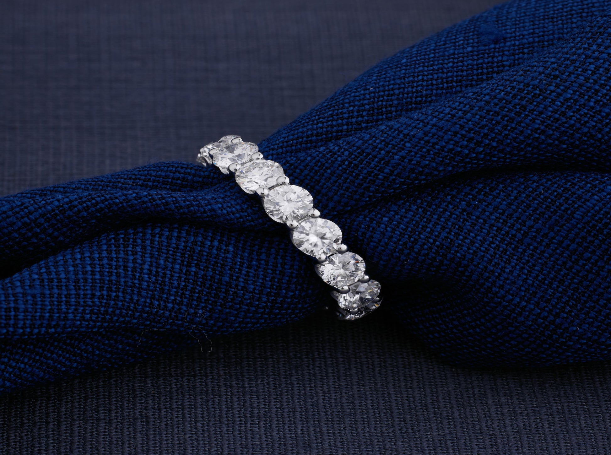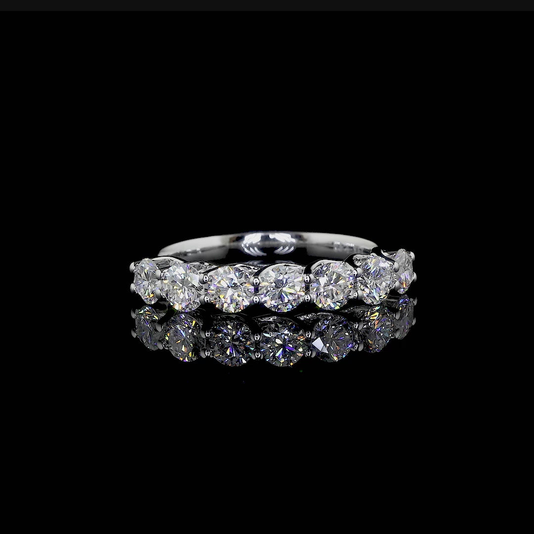 Crafted in high-polish white gold, the stones are securely nestled in a gently arched prong setting that maximizes brilliance from every angle. Whether gifted as an anniversary band, a promise ring, or a token of self-celebration, Luna captures light — and hearts — effortlessly.