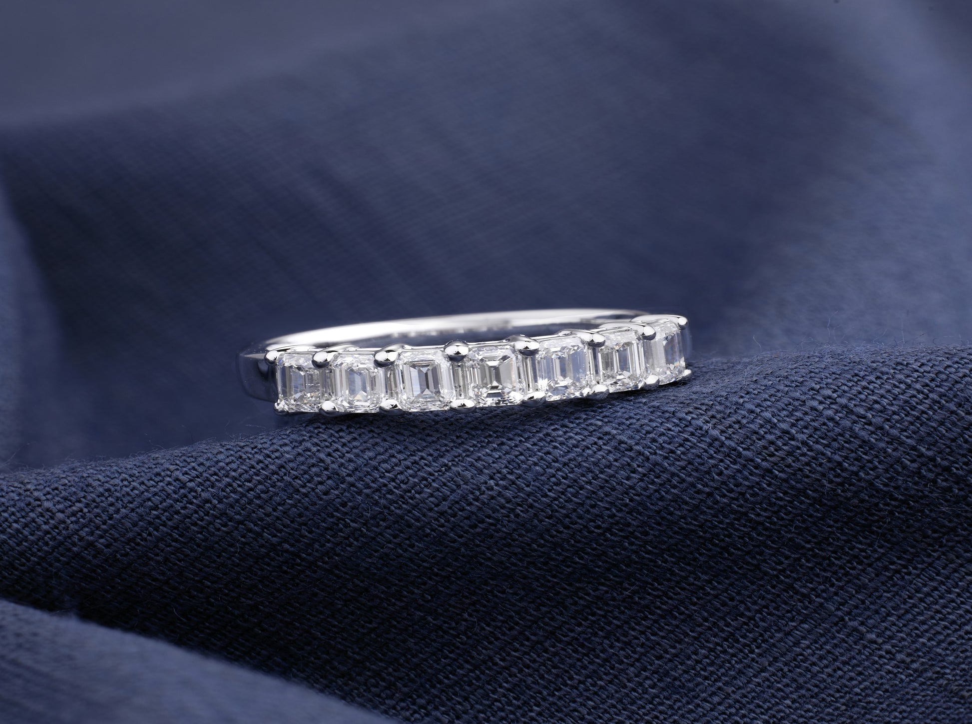 Design: Half eternity with seven emerald-cut stones