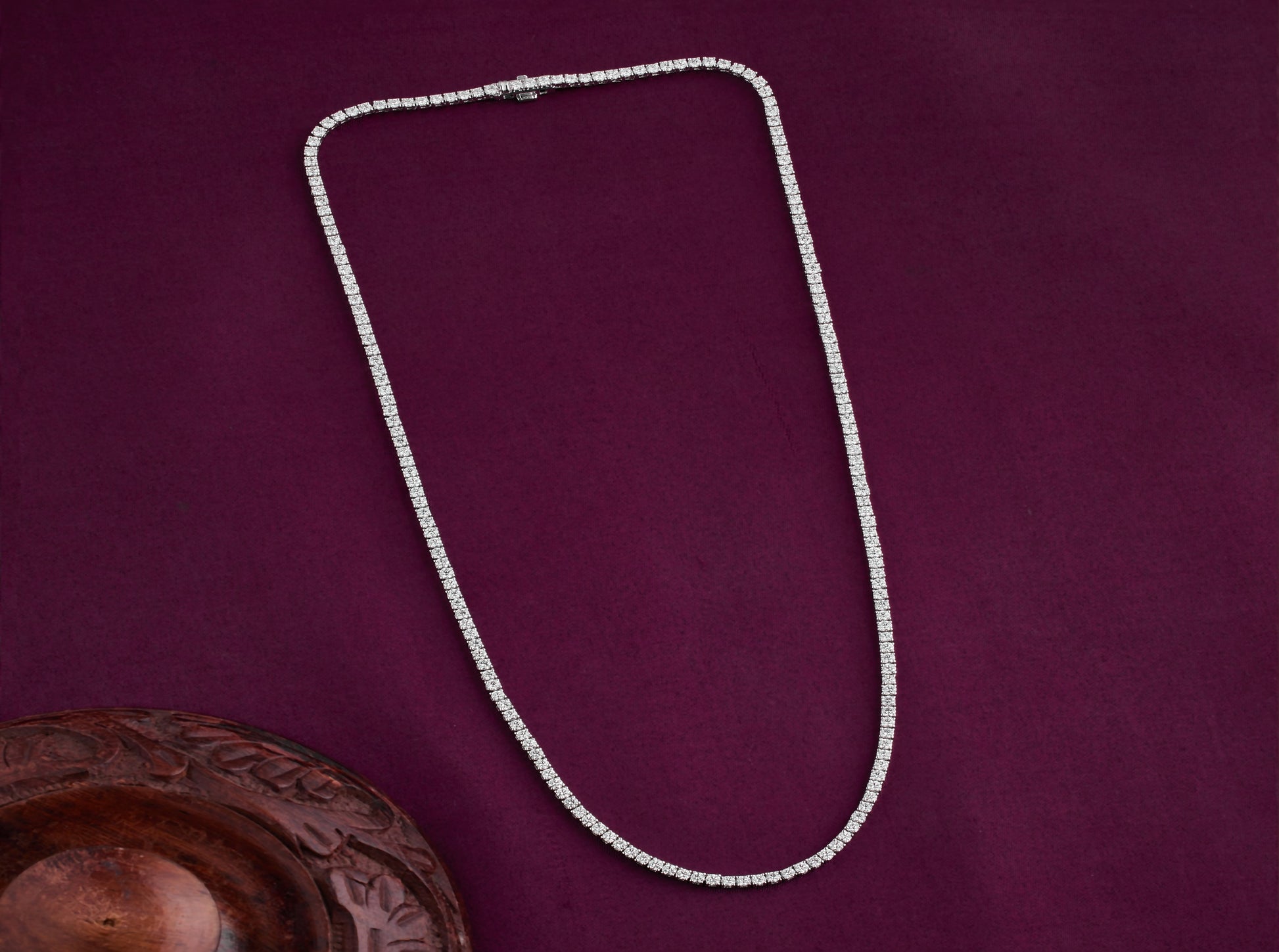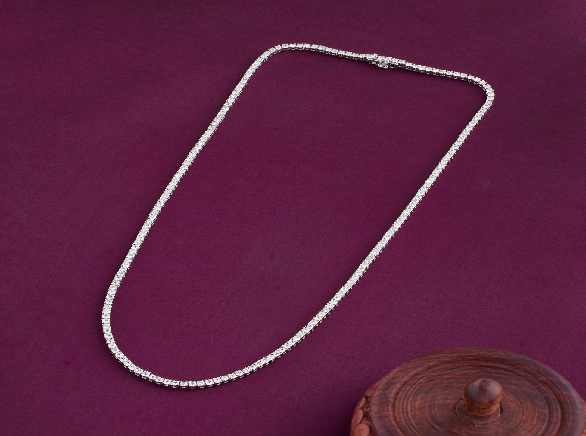Ecliptica is a timeless celebration of pure brilliance. This tennis-style necklace, encrusted with an endless stream of dazzling lab-grown diamonds, radiates sophistication with every curve. Its seamless silhouette is crafted for moments that demand understated luxury and everlasting allure.