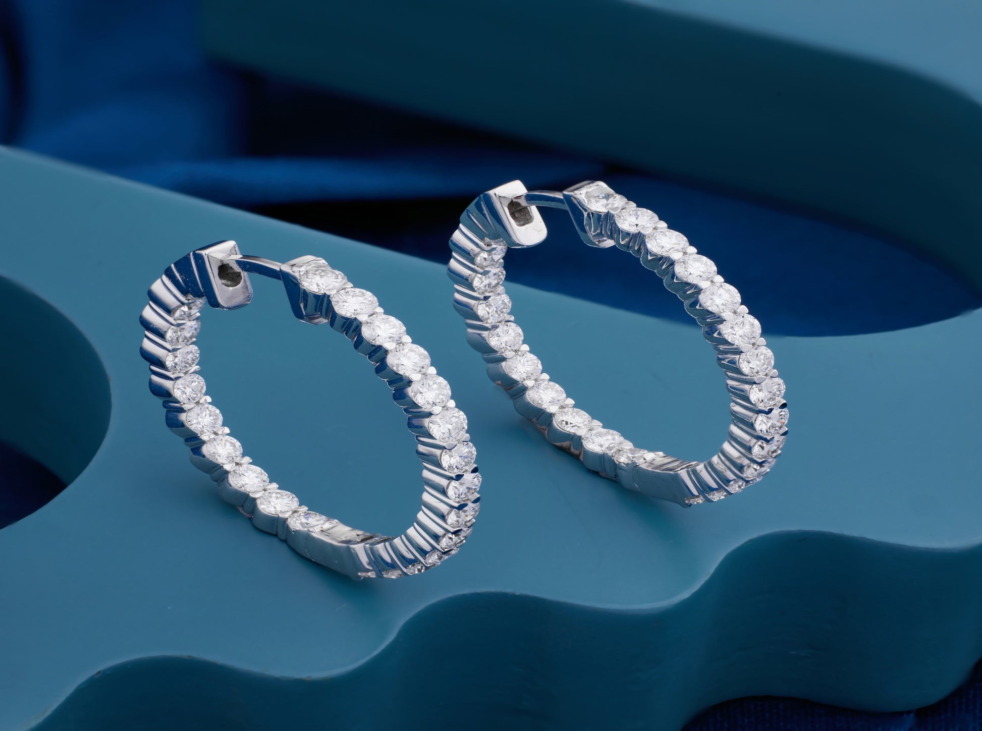 Radiant Halo Hoops redefine classic elegance with a contemporary twist. Each hoop is adorned with a continuous line of perfectly set round-cut lab-grown diamonds, reflecting light from every angle. Crafted for the modern muse who commands attention effortlessly, these earrings are a signature of refined confidence.